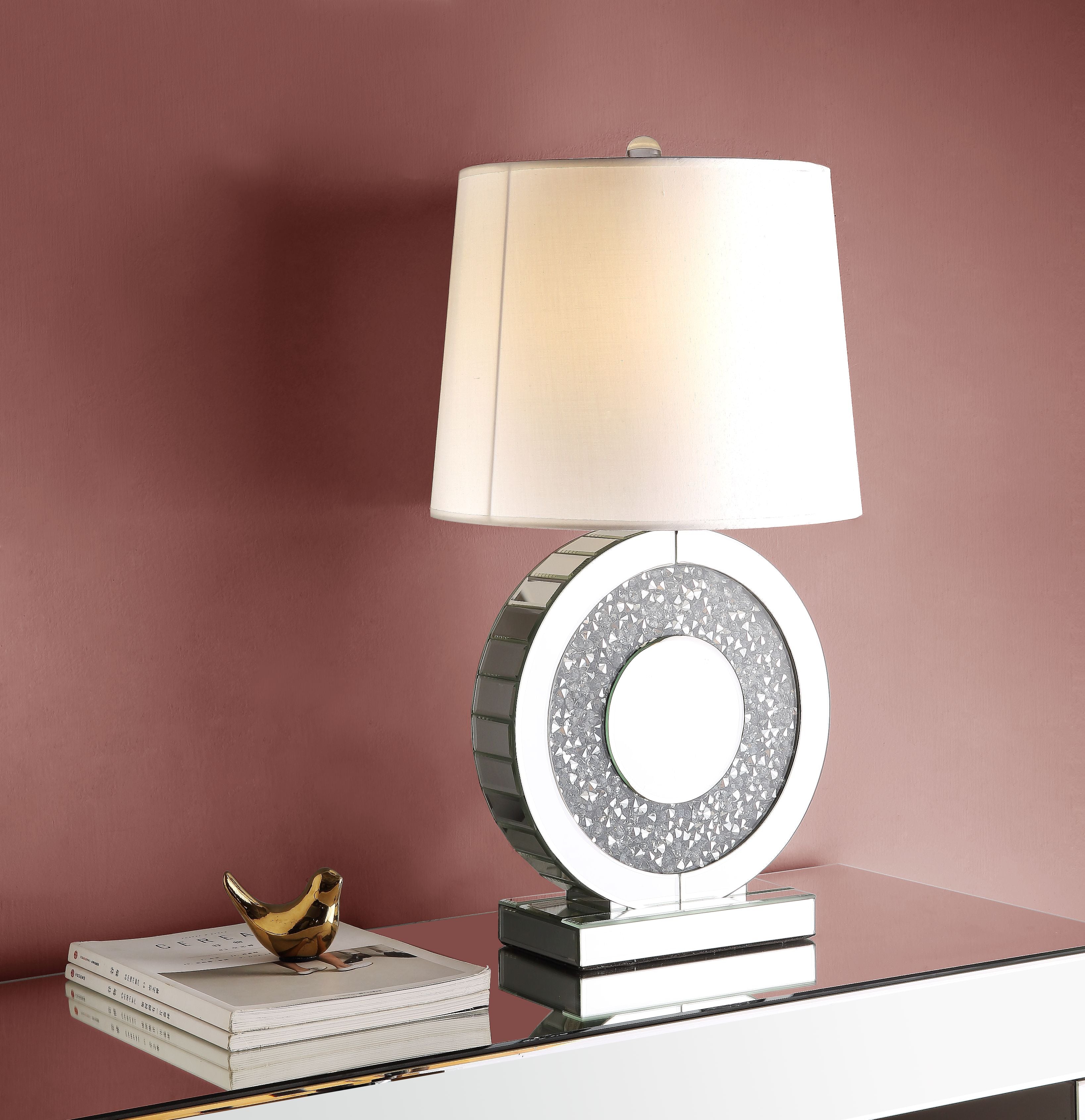 Mirror, Glass, MDF, Faux Diamonds (Acrylic), Shade (Fabric) |